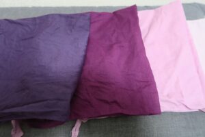 布地と染料には相性があるので、綿や麻などの植物繊維は染まりにくいので、あらかじめ濃染剤を使っておくと染まりやすくなります。昔は大豆の呉汁を繊維に付着させて、動物性たんぱく質を加えることで染まりやすくしていたそうです。