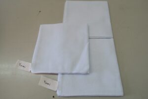 染料を煮出している間に、ハンカチのタグに自分の名前と媒染剤を書いておき、水で濡らしておきます。水でぬらすことで染めムラを防ぐことが出来ます。