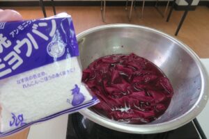 ミョウバンは、お漬物の発色をよくするためにも使われますね。銅などの金属を使われていた時もありましたが、環境へ悪影響を与えることから使われなくなってきました。