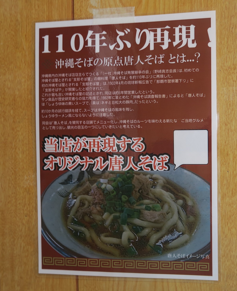初めての沖縄そば屋「支那そばや」の麺料理「唐人そば」を約110年ぶりに再現した。