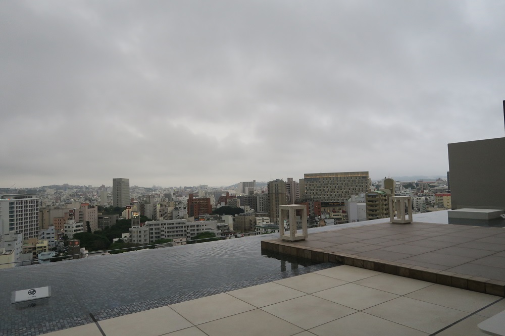 テラス席からは方角が違うので夕日は見られないものの、那覇の街並みが一望できます。
