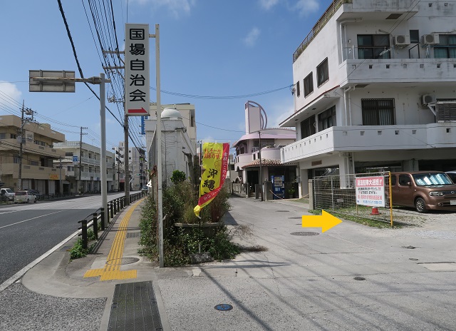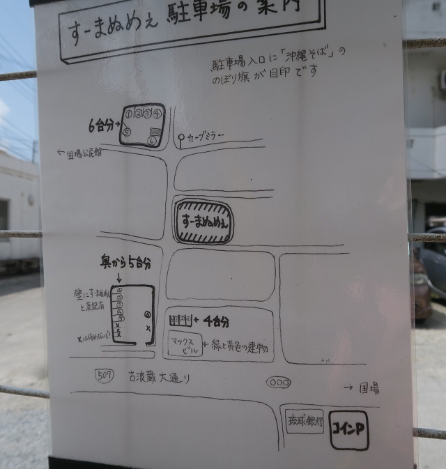 沖縄そばのノボリが目印です 矢印の先が駐車場です