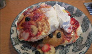 フルーツパンケーキを食べてみました。ボリュームたっぷりです。