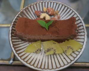 別日に再訪して、島豆腐のチョコタルトを食べました。ヴィーガンのスイーツなので、卵や牛乳は使ってないと思われますが、言われないとわからないくらいおいしいです。