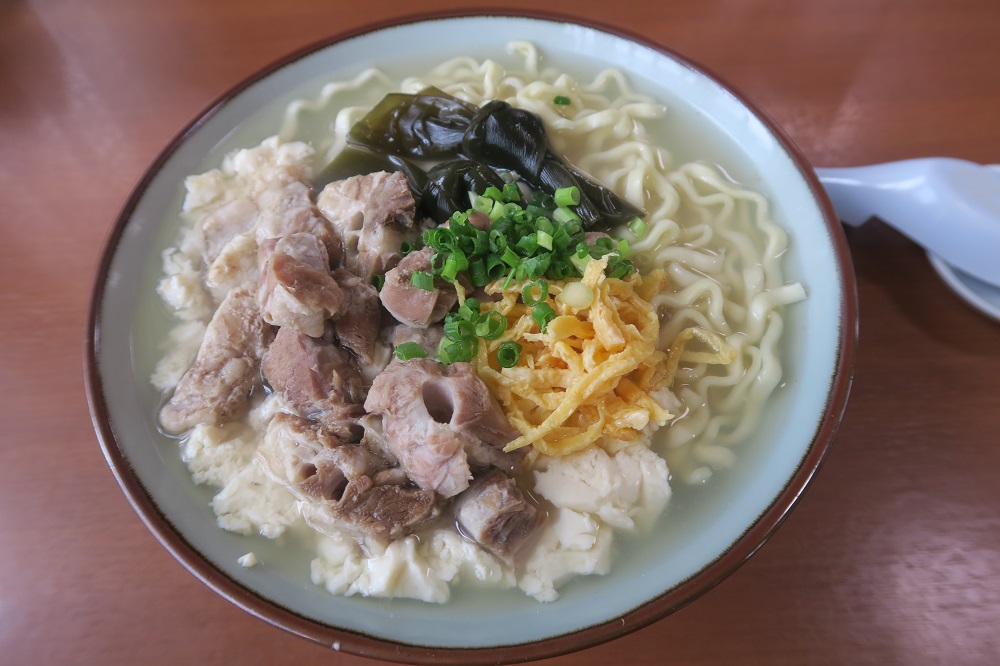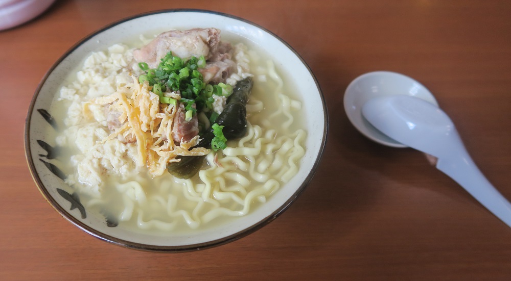 スープをひと口飲んでみて、ビックリです。豚骨がベースで、昆布を炊いた汁と少しだけカツオ節を使ったスープにゆし豆腐のスープが加わり、とてもおいしいのです。スッキリしたスープは、体だけでなく心にも沁みる味でした。