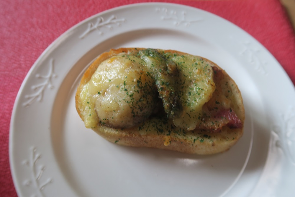 大好きなポテトとベーコンの組み合わせなので選びました。残念ですが、ジャガイモが固すぎました。もう少し柔らかく茹でないとせっかくの味わいが伝わりません。具材の味付けとパンのバランスももうひとつだと思います。