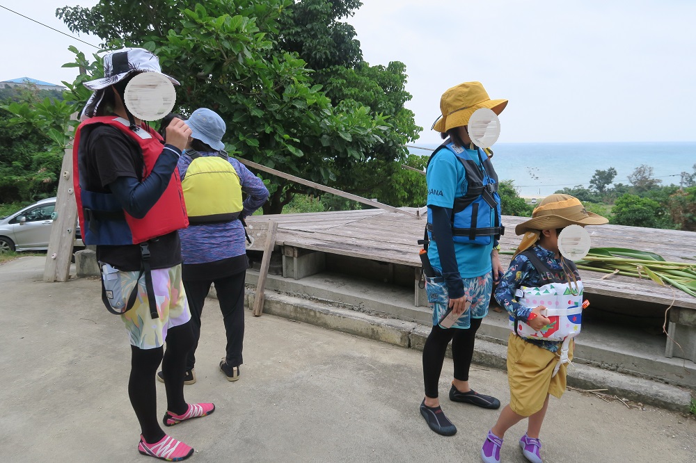 次にライフジャケットを着て出発します。これは水没と転倒した時のケガを防ぐ目的も兼ねています。毎回、南城市の自然体験企画は家族連れが多いのですが、大人だけの参加もOKです。