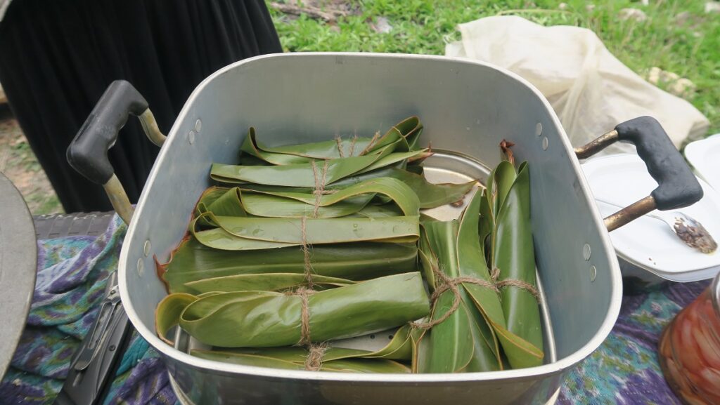 こちらは月桃の葉っぱで包んだ蒸しパンです。ムーチー風蒸しパンと言いましょうか。ほんのりと葉っぱの香りがする素朴な蒸しパンでした。マネしてみたい気もします。
