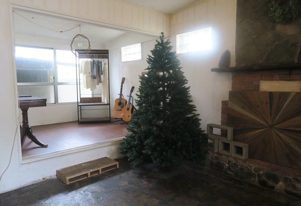 店内を見渡しながらのんびり待っていると、ギターが置いてあったり、クリスマスツリーがあるなど外国人住宅の面影が感じられます。以前、こちらを住まいにしていた方の暮らしぶりの情景が目に浮かびます。
