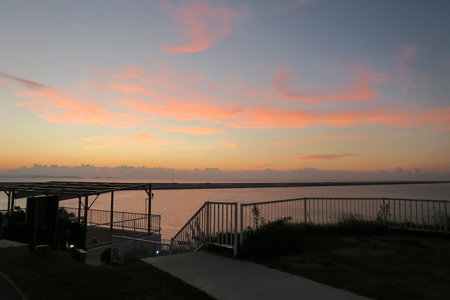 ウミカジテラスは西側の海に面して建てられているので、絶好の夕景スポットなのです。
