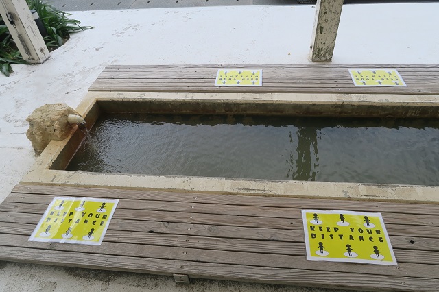 ウミカジテラスには足湯もあります。タオルをご用意ください。