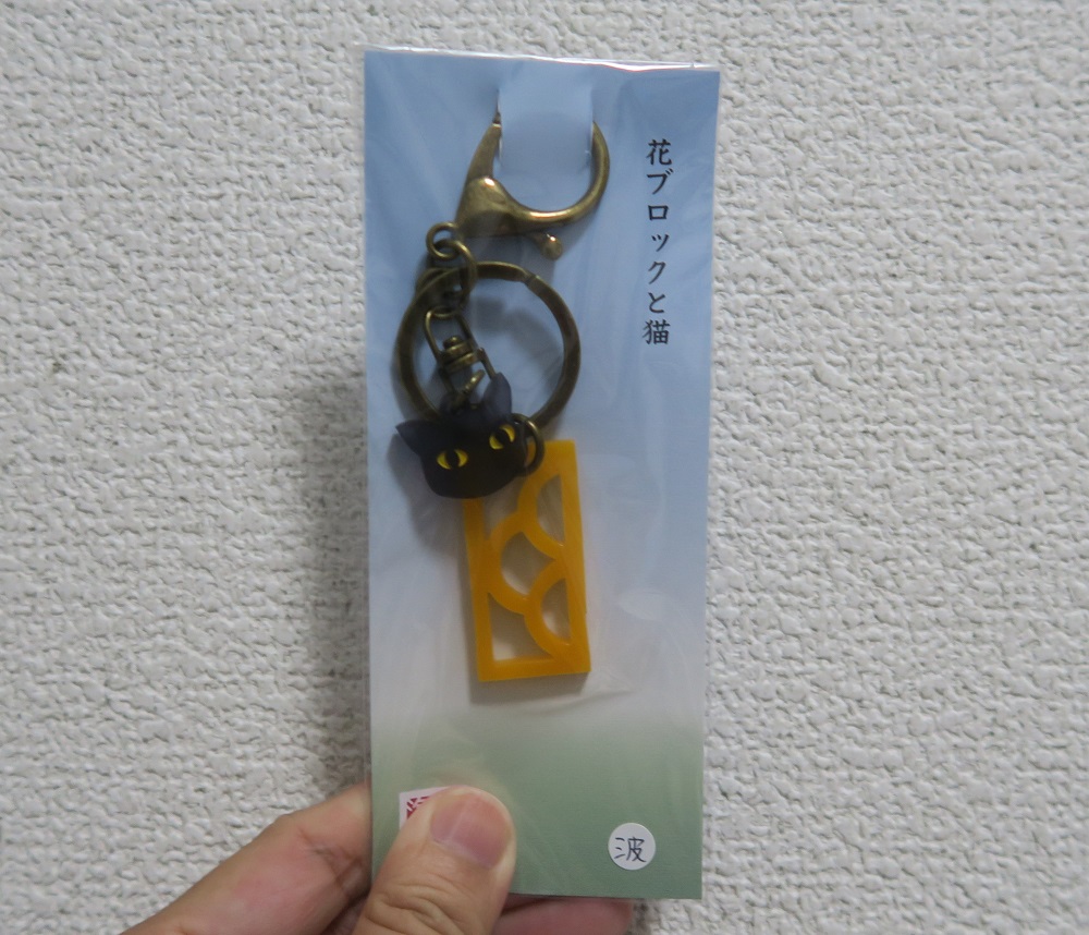 花ブロックとネコがモチーフのキーホルダーです。かわいいので我が家のメンバーになりました。
