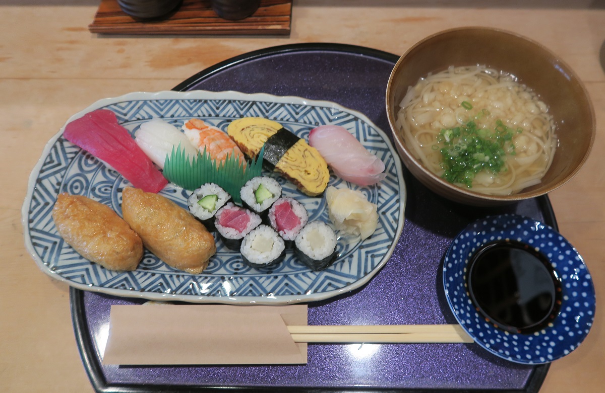「お寿司盛り合わせと稲庭うどんのかんざし汁」